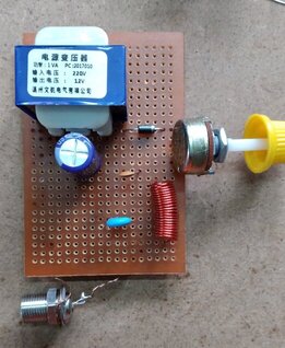L1 - 20 turns of 22SWG[0.7mm] enamelled copper wire closely wound on a 5mm former, air core